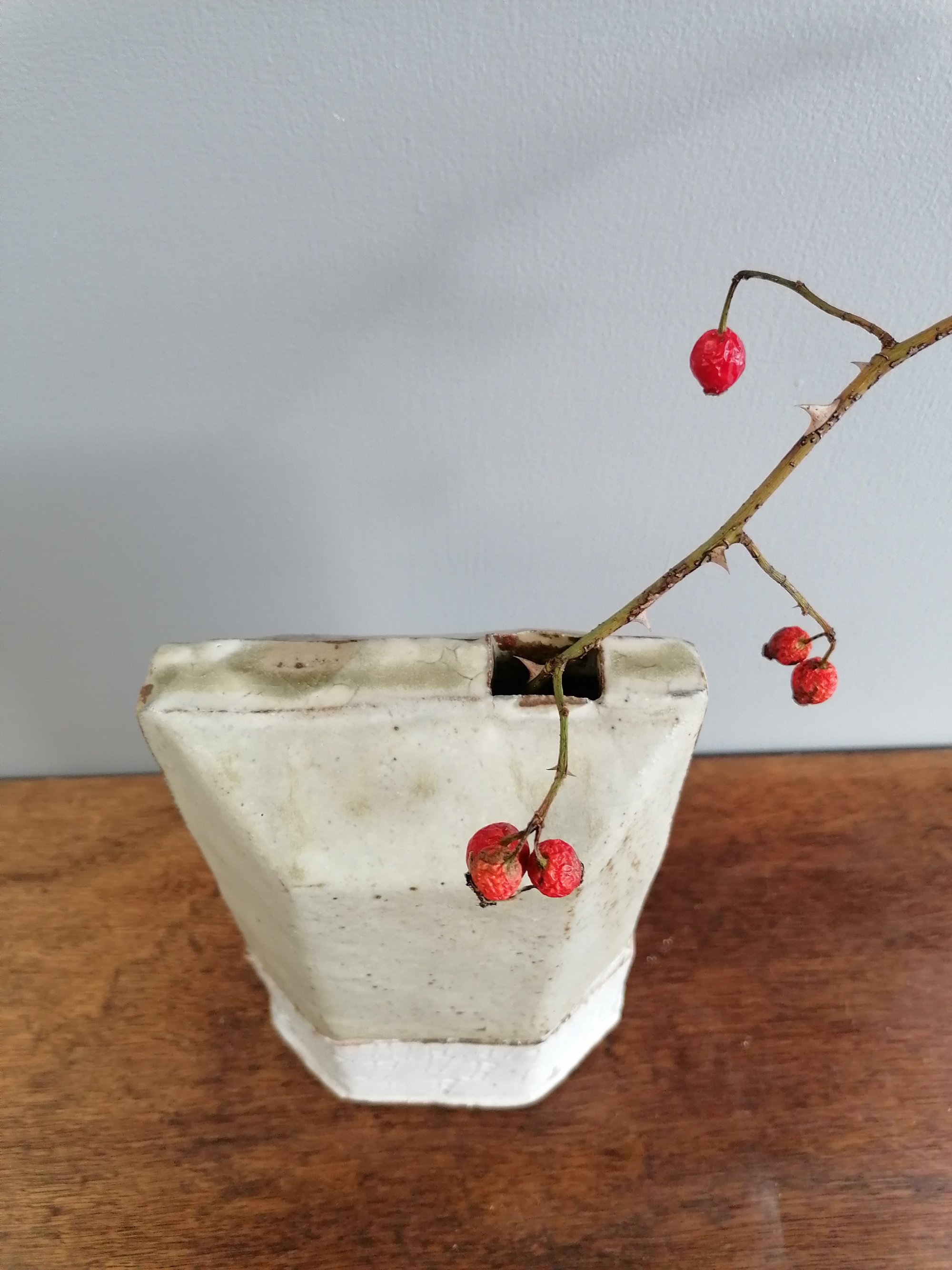 Gas and wood fired to around 1300°C in a reduction atmosphere.