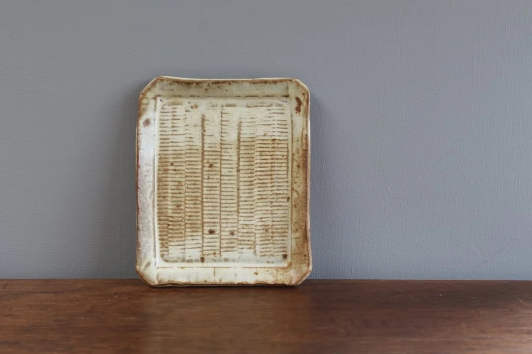 Ladder textured tray with my creamy FFM glaze. 18cm x 15cm